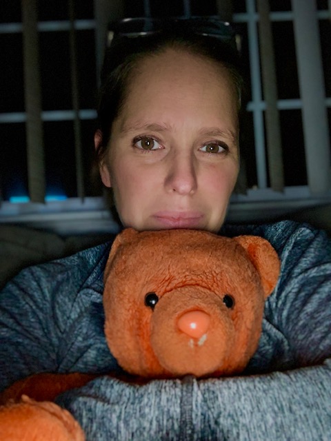 For the last almost 20 years now this now fading Orange bear has been with me almost every single night. This bear is the keeper of all my secrets and the guardian of my dreams. It has been with me through every up and every down I have had in my adult life. It was with me my last year living in my childhood home. It made it through two apartments and now the house I share with my husband and three children. It has come with me on weekend trips, vacations and even on my honey moon. It spent countless nights in tents and campers during our family camping trips. It has been on weekend visits to see friends and family, hotels for ice hockey tournaments, and quick overnights just because.